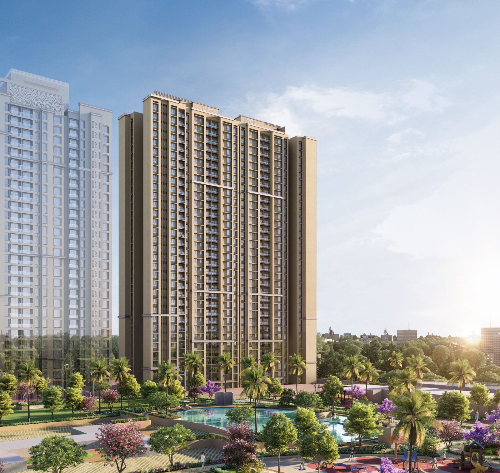 - Amenities: rooftop swimming pools, gymnasiums, kids playing ground, multi purpose hall, meeting room, yoga track, walking path